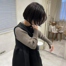 大人カジュアルなミニボブは、ボブスタイルでもシルエットが丸くなりすぎないように、少しタイトに仕上げています。このスタイルは、これからの季節にぴったり!ハイネックの服装や冬服とも相性抜群で、とても可愛いです。