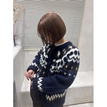 ボブスタイルとミルクティーカラーの組み合わせは、まさに最強の相性です◎!顔周りを明るく見せる効果があり、若々しくフレッシュな印象を与えます。カジュアルからフォーマルまで、どんなファッションにもマッチします。