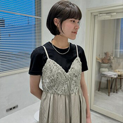 こんにちは!今回は、夏にぴったりのヘアスタイルをご紹介します。ふわっとしたミニボブと透明感たっぷりのグレージュカラーです!この組み合わせはとっても可愛くて、周りの人からの注目間違いなしです♪