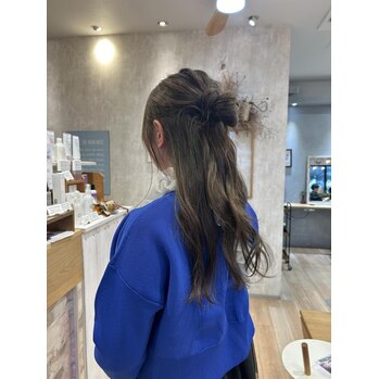 このアレンジは、姫路駅近くの美容院ランキングでも人気のスタイルです。ホットペッパービューティーでも多くの方に支持されています。