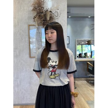 こんにちは!グラッドスタイリストの入江です!今回は、サラッとラインの揃ったロングスタイルをご紹介します。オン眉の前髪がアクセントになって、とっても可愛いですよ♪