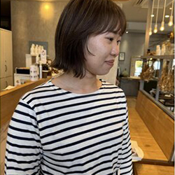 今回のおすすめスタイルは、顔まわりに動きを持たせたヘルシーなボブです!このスタイルは、カジュアルなファッションにぴったりで、特に夏に向けておすすめですよ♪ぜひ試してみてください!
