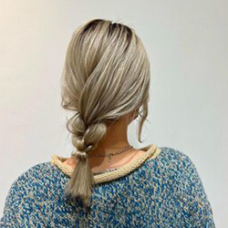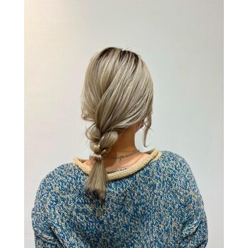 ハイトーンカラーの髪は、それだけでインパクトがありますね!だからこそ、シンプルなアレンジでも十分オシャレに見えます。ざっくりとほぐして、カジュアルな雰囲気を楽しんでください♪