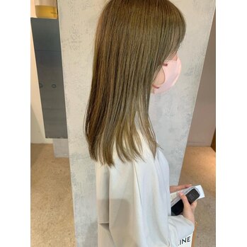 こんにちは!私たちのサロンでは、透明感がたっぷりのオリーブベージュが大人気です。このカラーは、ブリーチなしでも楽しめるのが魅力!もともと明るめの色落ちをしている方には特におすすめですよ。