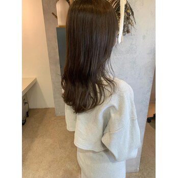 こんにちは、吉田です!今回は、透明感のある暗めカラー「グレージュ」で一気に秋冬モードにチェンジしましょう。水素カラーを使えば、サラツヤ髪も手に入りますよ!